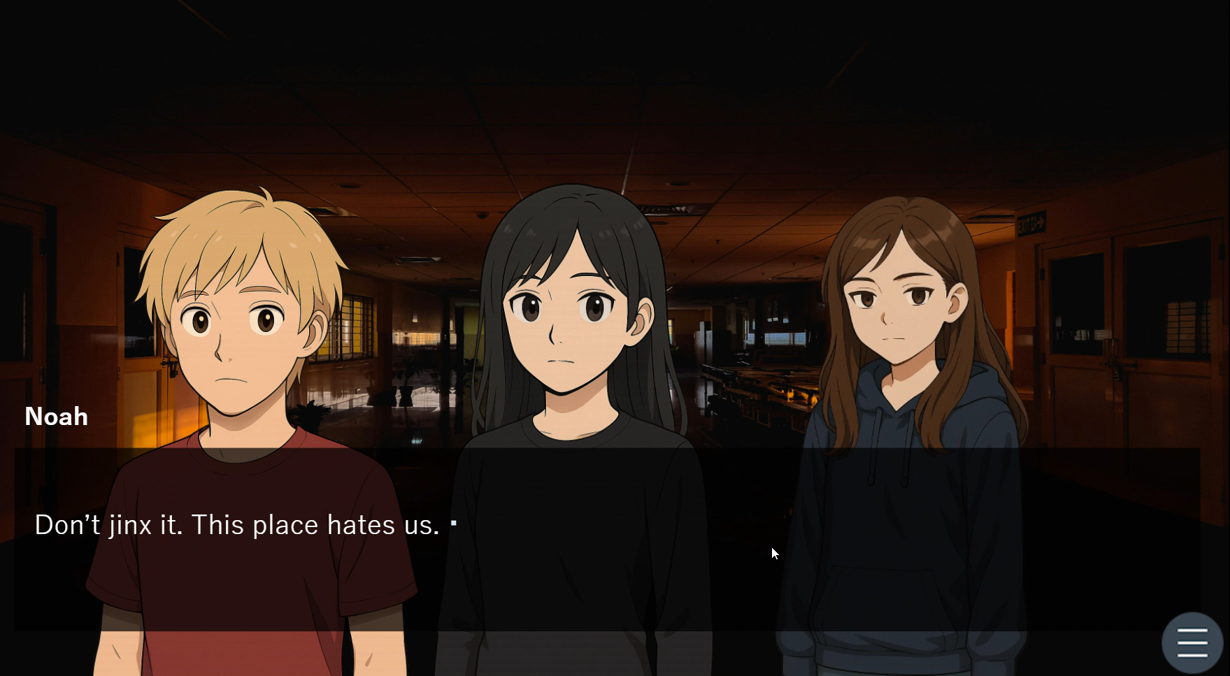 You are stuck in a hotel when the power goes out and the technology around you begins to fail. Added to a group chat with three strangers, you must communicate, make fast decisions, and choose who to trust as the building reveals its dark secrets. Every choice affects relationships and survival, leading to multiple endings where some escape and others do not.